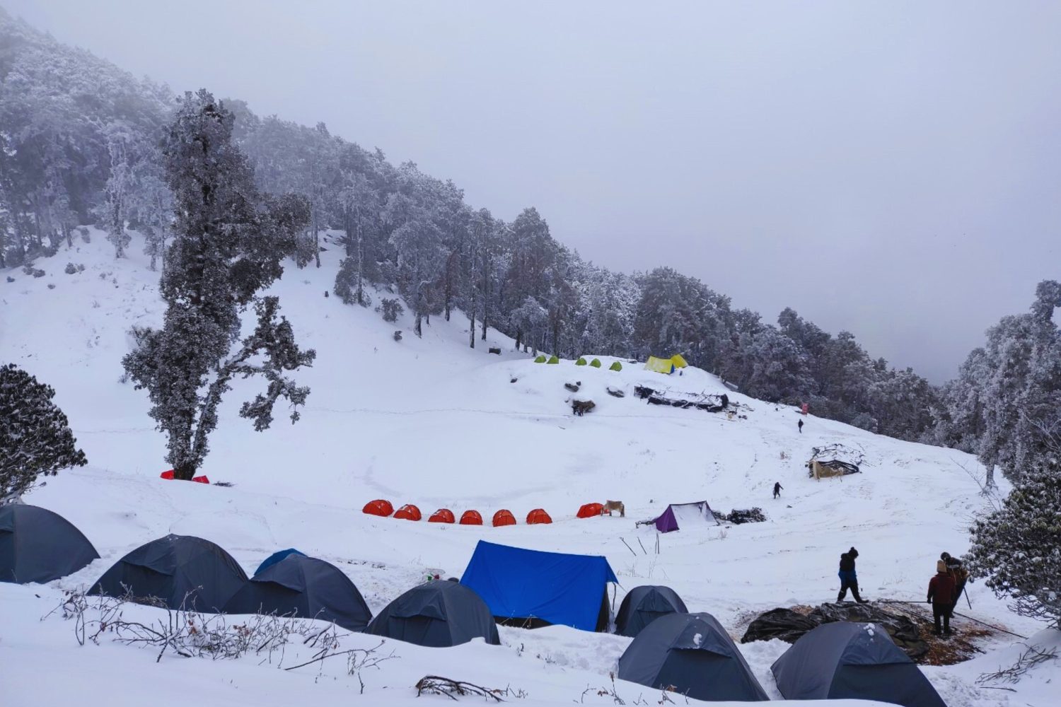 Start early for a day filled with panoramic Himalayan vistas. First, ascend to Jhandi Top for stunning views of Trishul, Nanda Ghunti, and the surrounding peaks. Continue towards Brahmatal Summit (3,750 m), a spectacular vantage point with 360° views of the snow-laden ranges. After spending time at the summit, descend through gentle snow slopes to reach Brahmatal Camp near the lake. Enjoy a peaceful night amidst the high-altitude wilderness.