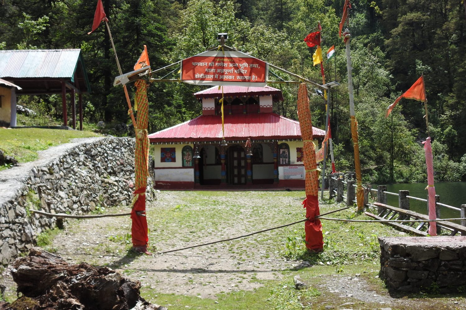 Dodital Lake, also known locally as Dhundi-tal or Ganesha-katal, is revered as the sacred birthplace of Lord Ganesha. This freshwater lake is the primary source of the Assi Ganga River, which later converges with the Bhagirathi River. During winter, the lake often becomes partially frozen, with its surroundings blanketed in snow, creating a serene winter landscape. A Ganpati temple is located on the lake & eastern shore, nestled in the Barahat range.