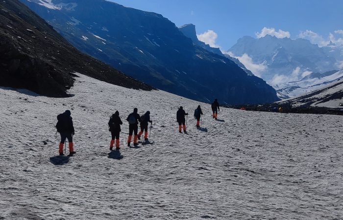 Today’s trek is a descent through a rugged landscape of scree, loose rocks, and glacial moraines. The trail demands focus as you navigate the uneven terrain, but the stark beauty of the Lahaul Valley makes every step worth it. Surrounded by barren mountains and icy streams, the scenery is raw and dramatic. As you descend lower, signs of civilization begin to appear, eventually leading you to the roadhead at Chhatru. Here, your vehicles will be waiting, marking the end of your incredible journey through two contrasting valleys—lush Kullu and arid Lahaul.
