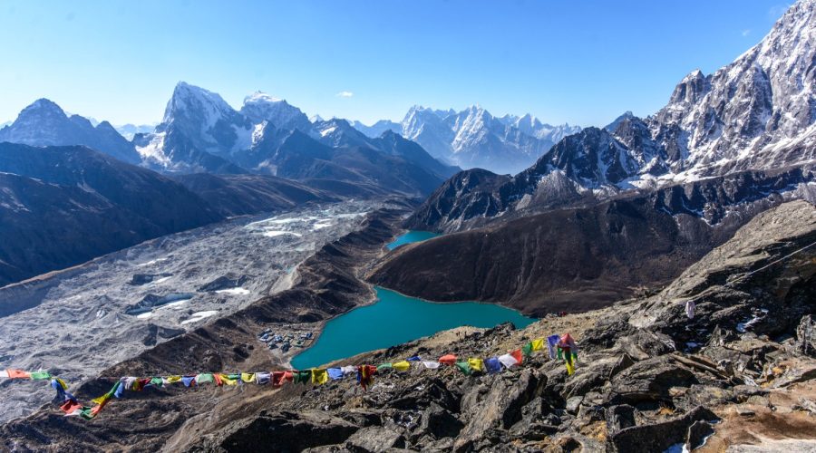 c) Enjoy panoramic views of the surrounding peaks, glaciers, and valleys.