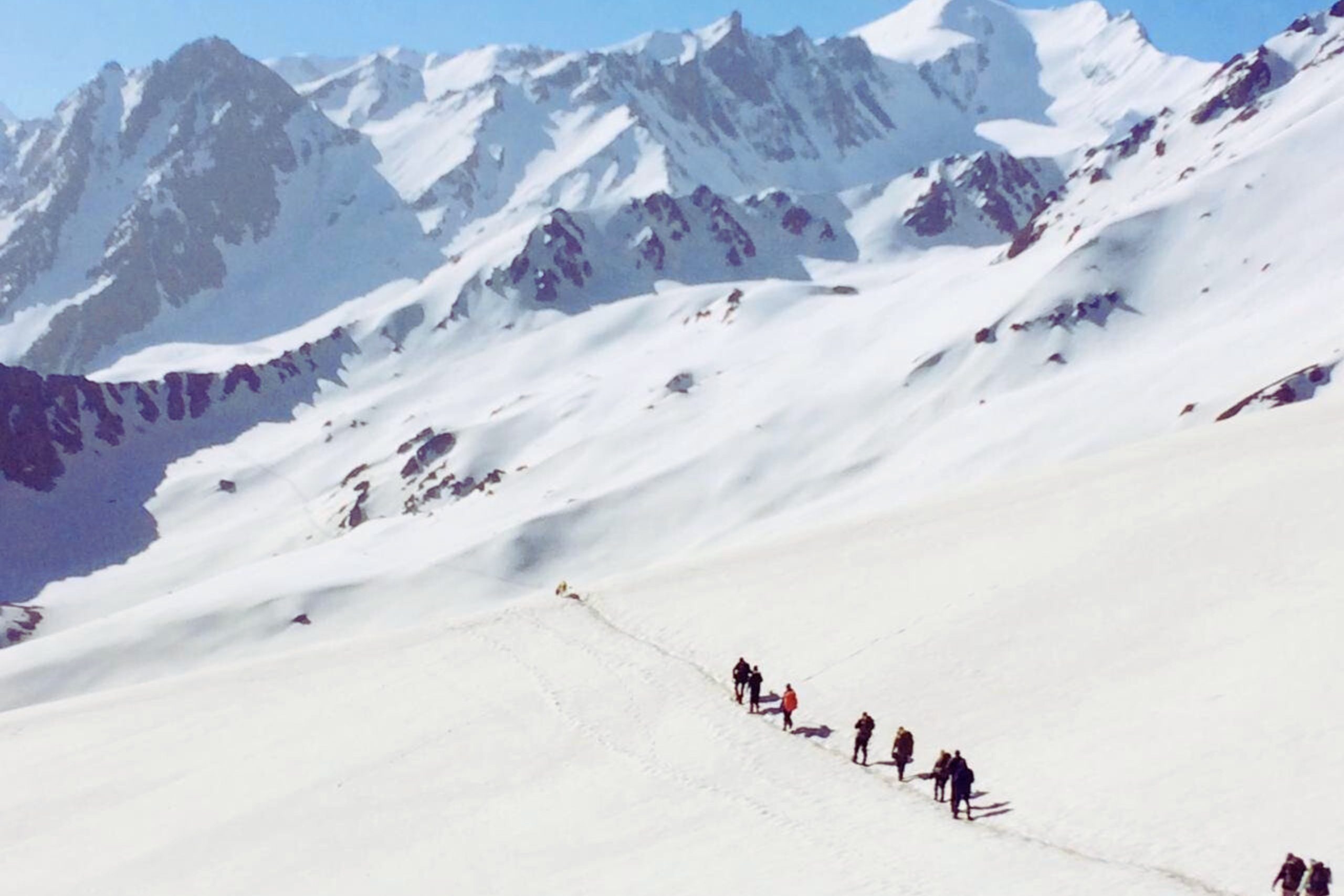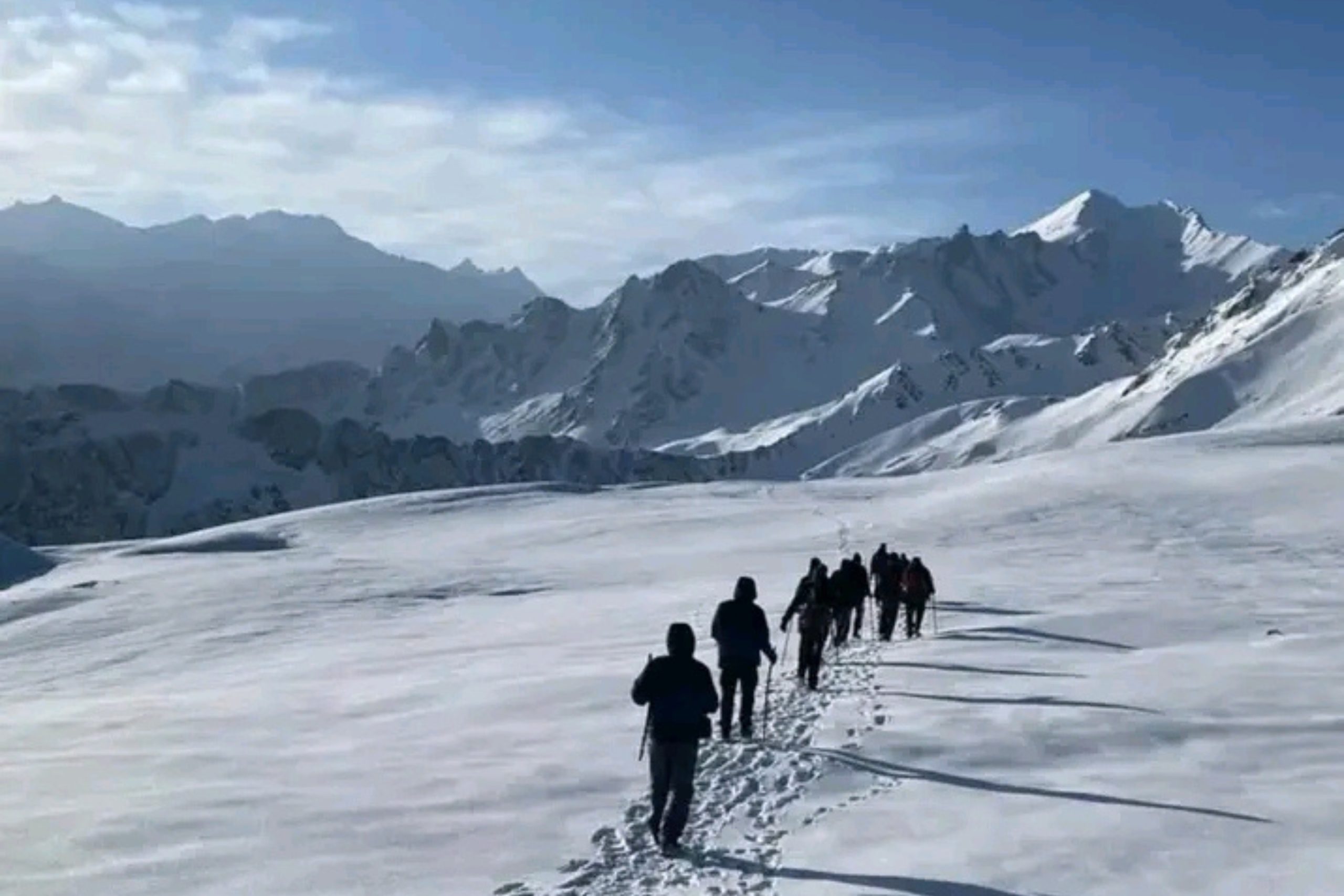 Start early before dawn as you begin your ascent to Sar Pass. The trail is completely covered in snow for most of the year, creating a magical white corridor as the sun rises over the mountains. The climb is steady but requires patience and proper pacing. As you gain height, the Himalayan panorama becomes spectacular—with endless ridgelines, snowfields, and shimmering peaks.